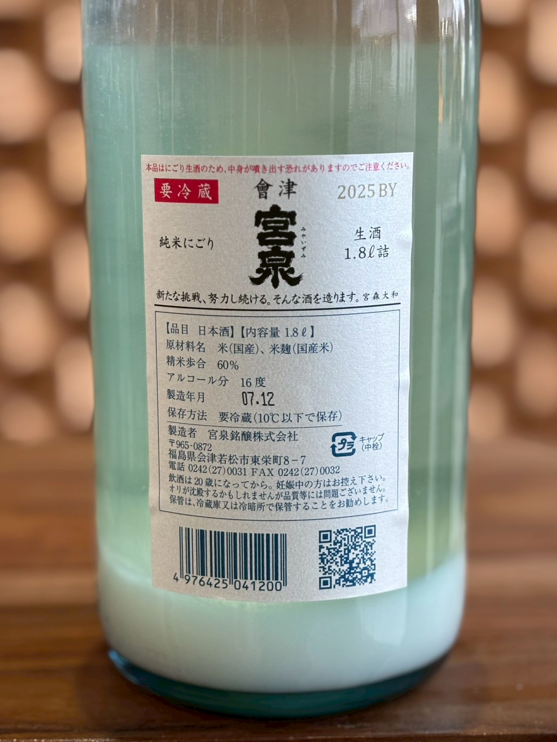 宮泉銘醸 會津宮泉 純米にごり”初しぼり”生 宮泉銘醸 會津宮泉 純米にごり”初しぼり”生 (miyaizumi_00008_1) 宮泉銘醸さんより 12月の超!季節限定品!!! 『會津宮泉 純米にごり生酒』入荷です! 厳寒の時期にしぼりたてのうすく濁ったお酒を、そのままびん詰めし冷蔵貯蔵をさせました。 フレッシュでさわやかな味わい。 ほんのり甘口で米の旨みが十分に楽しめます。 今夜は!宮泉!超希少な、にごり生酒で! さあ!一献!! 商品スペック 原料米 酒造好適米 精米歩合 60% 度数 16度 火入れ なし(本生酒)(要冷蔵) 宮泉銘醸 會津宮泉 純米にごり”初しぼり”生 1800ml 在庫状態 : 売り切れ ¥3,450(税込) 只今お取扱い出来ません 宮泉銘醸 會津宮泉 純米にごり”初しぼり”生 720ml 在庫状態 : 売り切れ ¥2,000(税込) 只今お取扱い出来ません