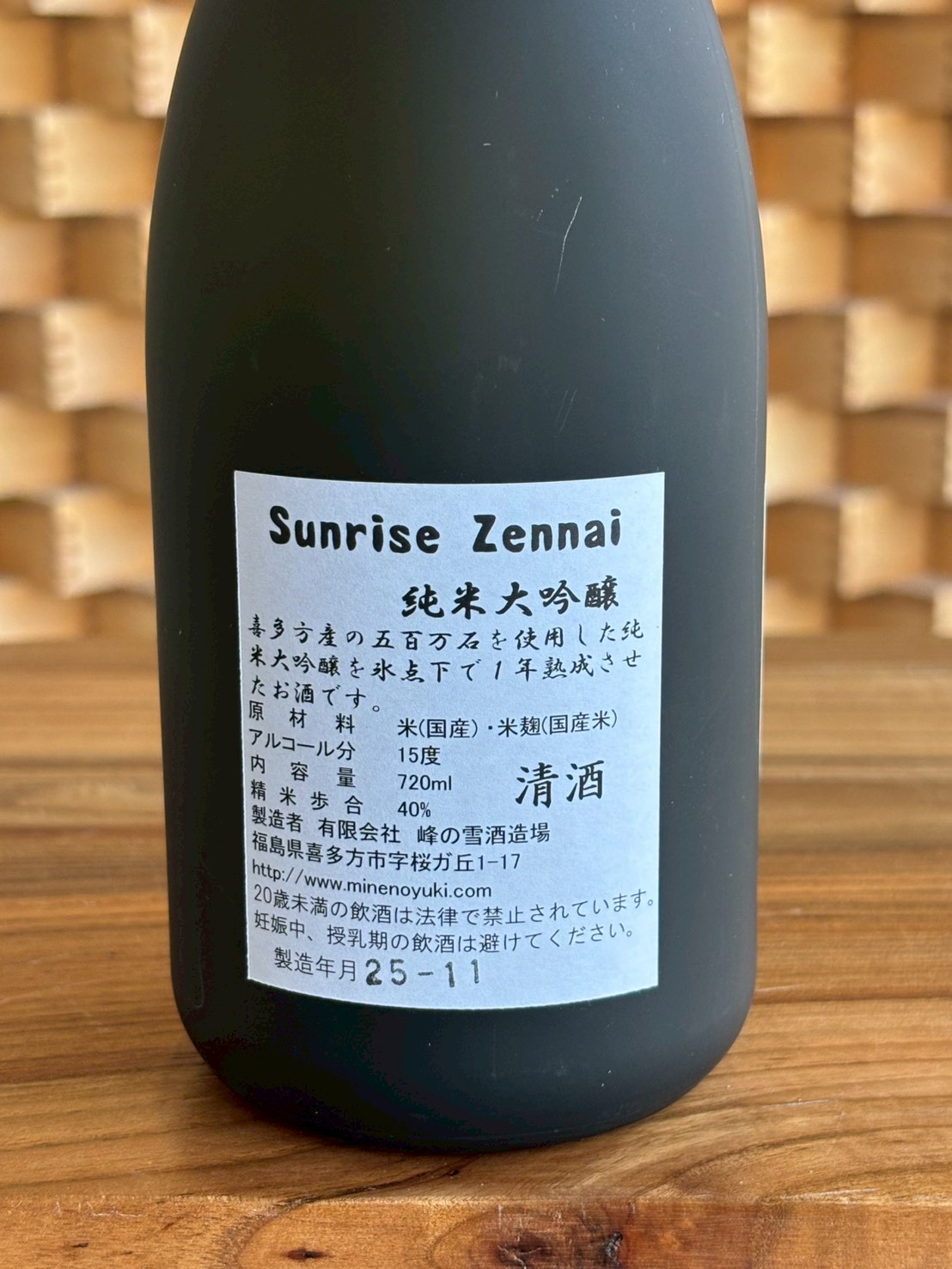 峰の雪酒造 純米大吟醸 yamatoya zennai 喜多方酒蔵場オリジナル「サンライズ ゼンナイ」720ml