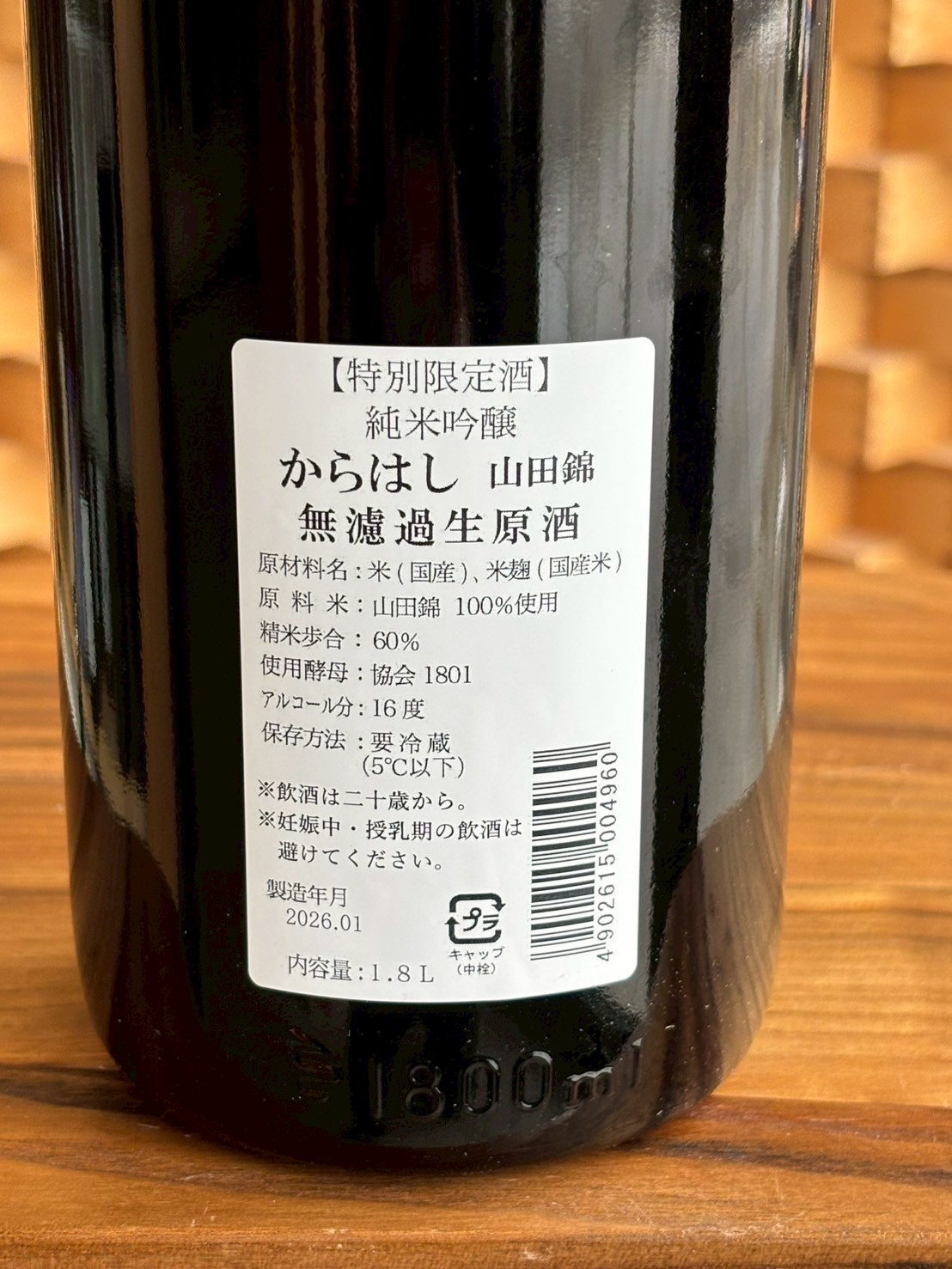 純米吟醸「からはし」黒ラベル山田錦の新酒無濾過生原酒バージョン